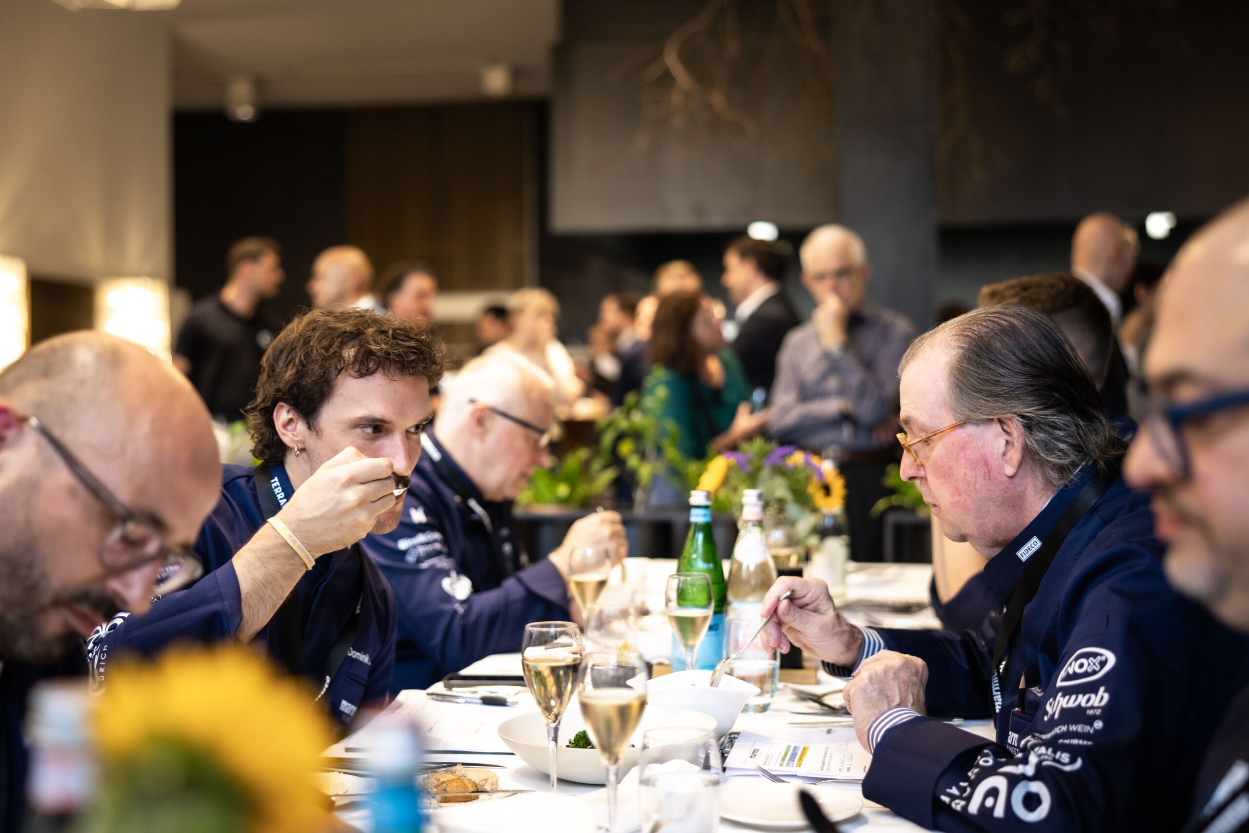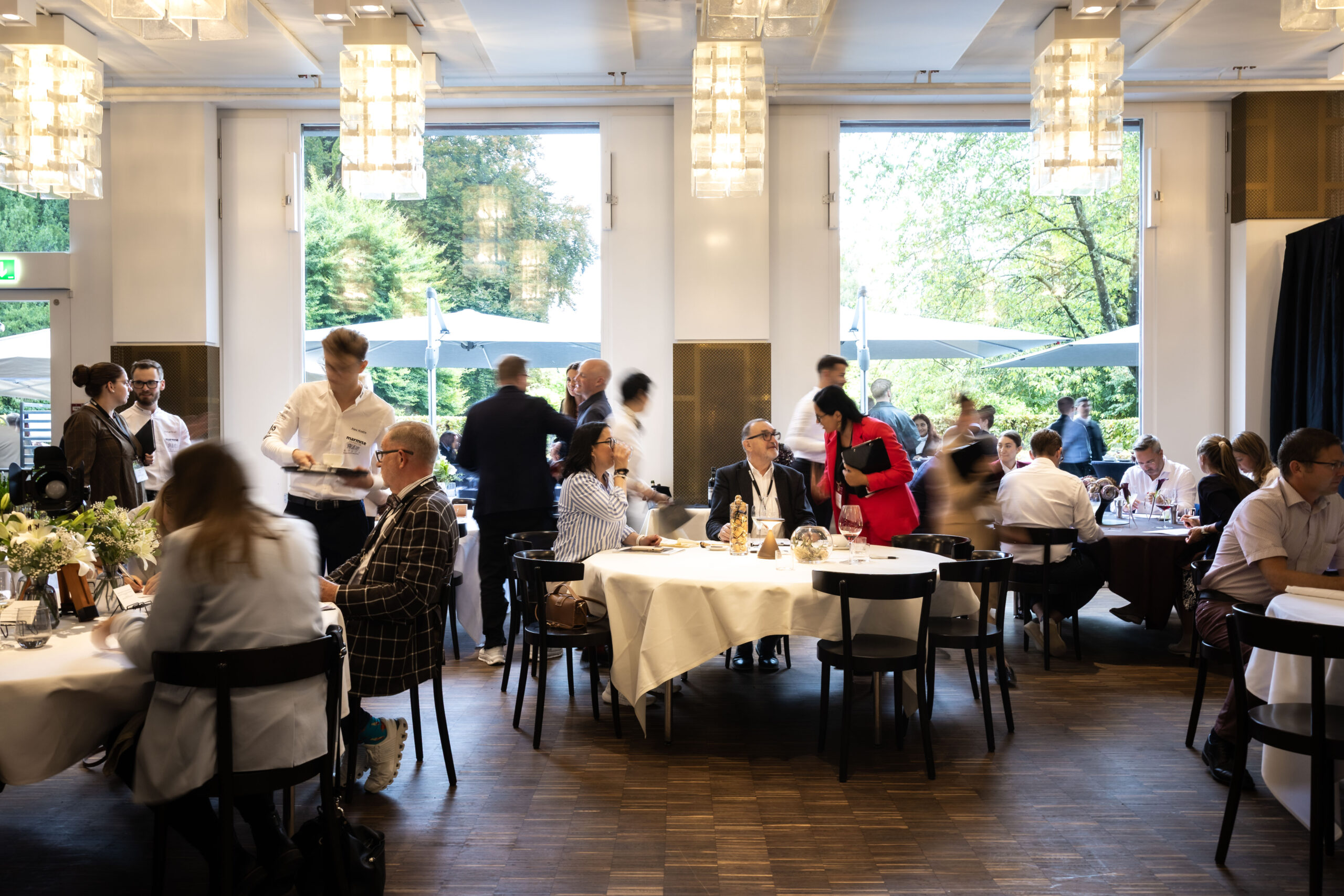 Um 12.30 Uhr richtete sich der Fokus auf die Kategorien Service und Sommellerie. Die Service‑Finalistinnen und ‑Finalisten starteten ihren Tag bereits am Morgen mit einem ausführlichen Wein‑ und Menü‑Briefing, bevor sie eine Stunde Zeit erhielten, ihren Tisch bis ins kleinste Detail einzudecken.