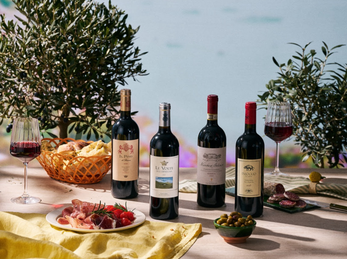 Bild v.l.: Tenuta Di Biserno 2020, Il Pino di Biserno, Toscana IGT (CHF 46.90 statt CHF 52.20), Tenuta dell Ornellaia 2022, Le Volte, Toscana IGT (CHF 19.95 statt CHF 24.50), Tignanello 2021, Marchese Antinori, Chianti Classico DOCG (CHF 36.50 statt CHF 40.90), Tenuta Di Biserno 2023, Insoglio del Cinghiale, Toscana IGT (CHF 18.95 statt CHF 18.95)