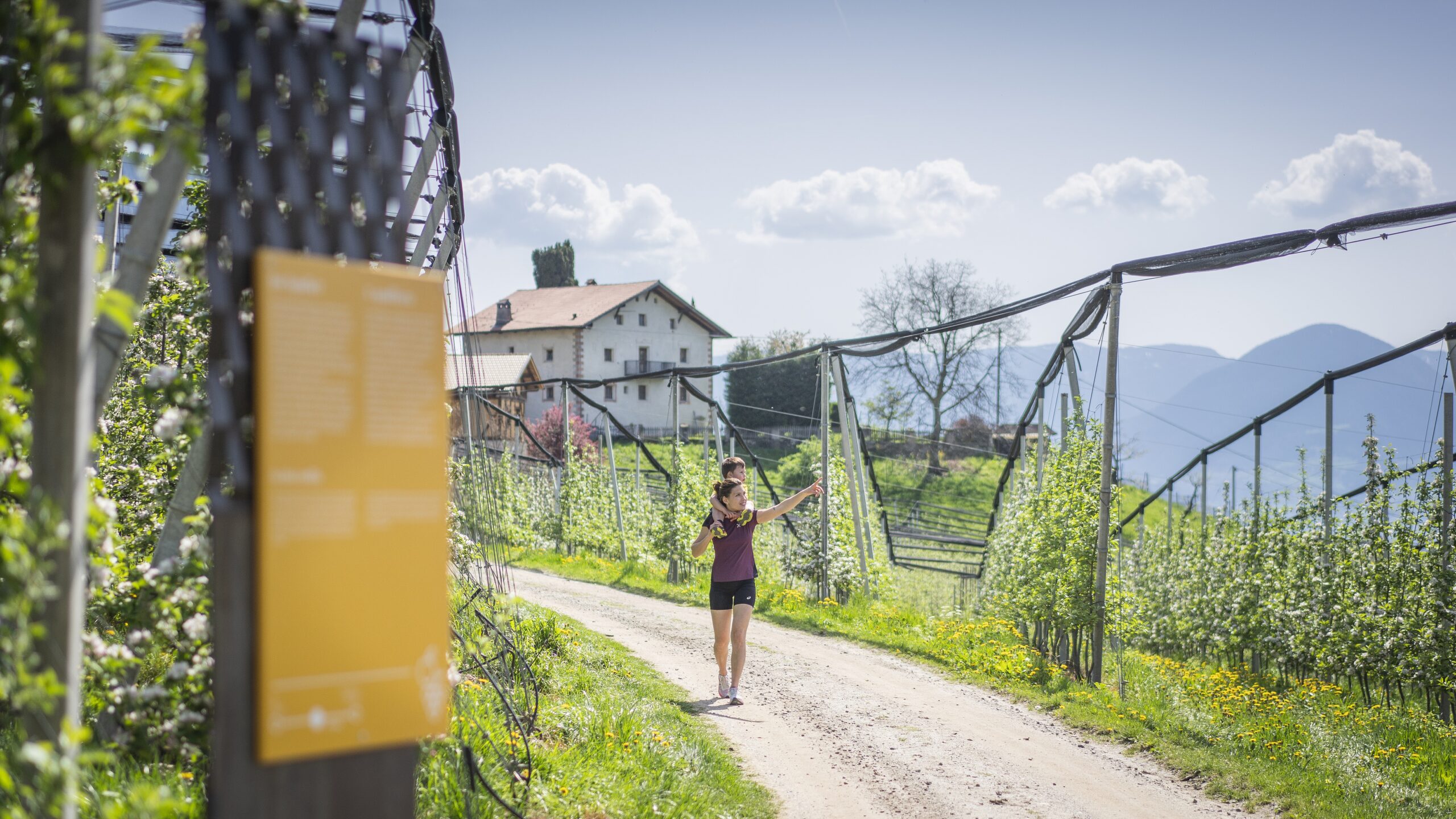 Auf dem Apfel- und Weinweg „Bacchus und Pomina“ in und rund um Schenna erfahren Neugierige Wissenswertes über die zwei wichtigsten landwirtschaftlichen Produkte der Südtiroler Gemeinde bei Meran.
