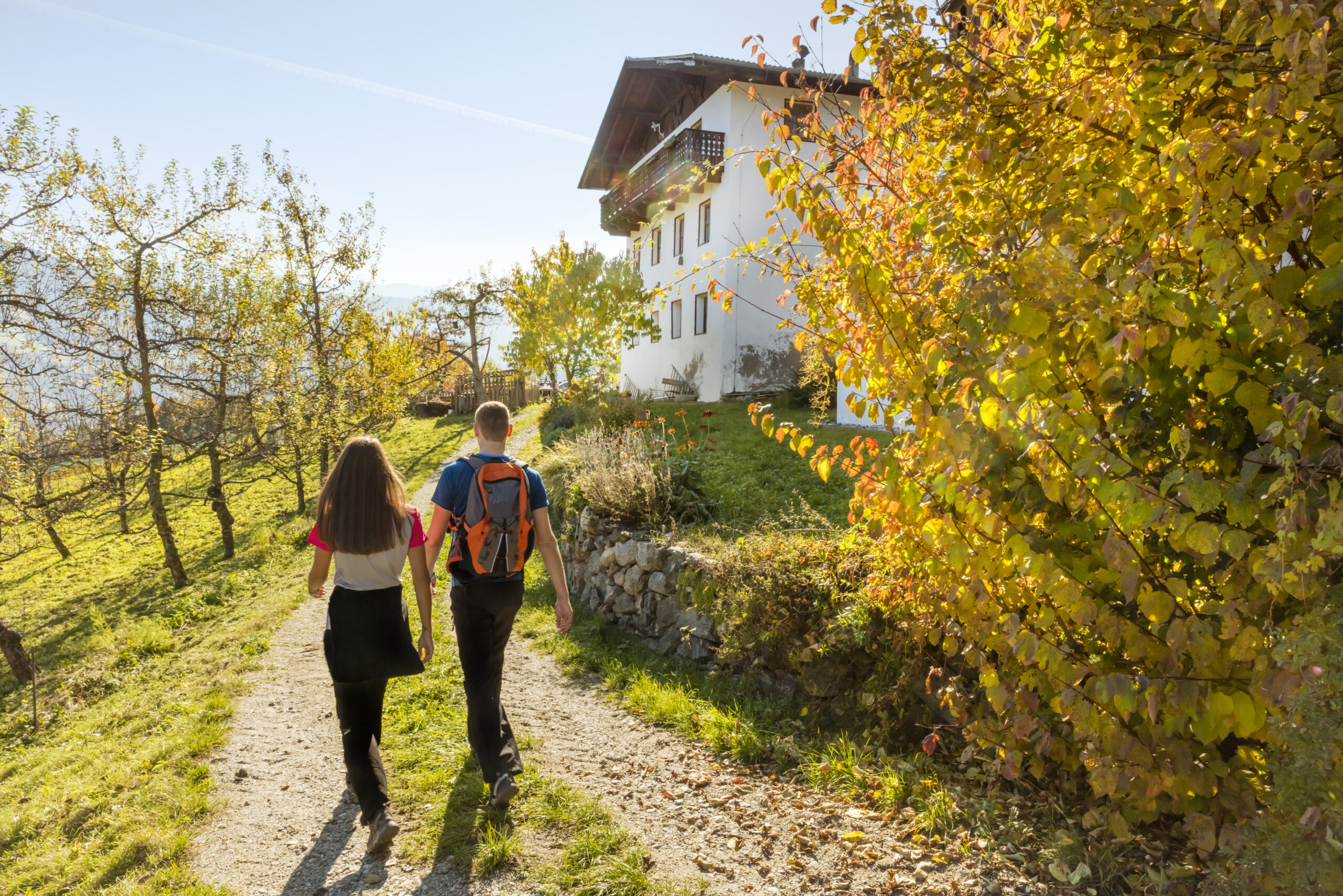 Südtirol, Brixen, Burgerhof Meßner, Herbst — Solch urige Einkehrschwünge sind auf dem Südtiroler Keschtnweg mehr Regel als Ausnahme. Zahlreiche „Roter Hahn“-Urlaubsbauernhöfe und -Schankbetriebe liegen nahe dem beschilderten Pfad.