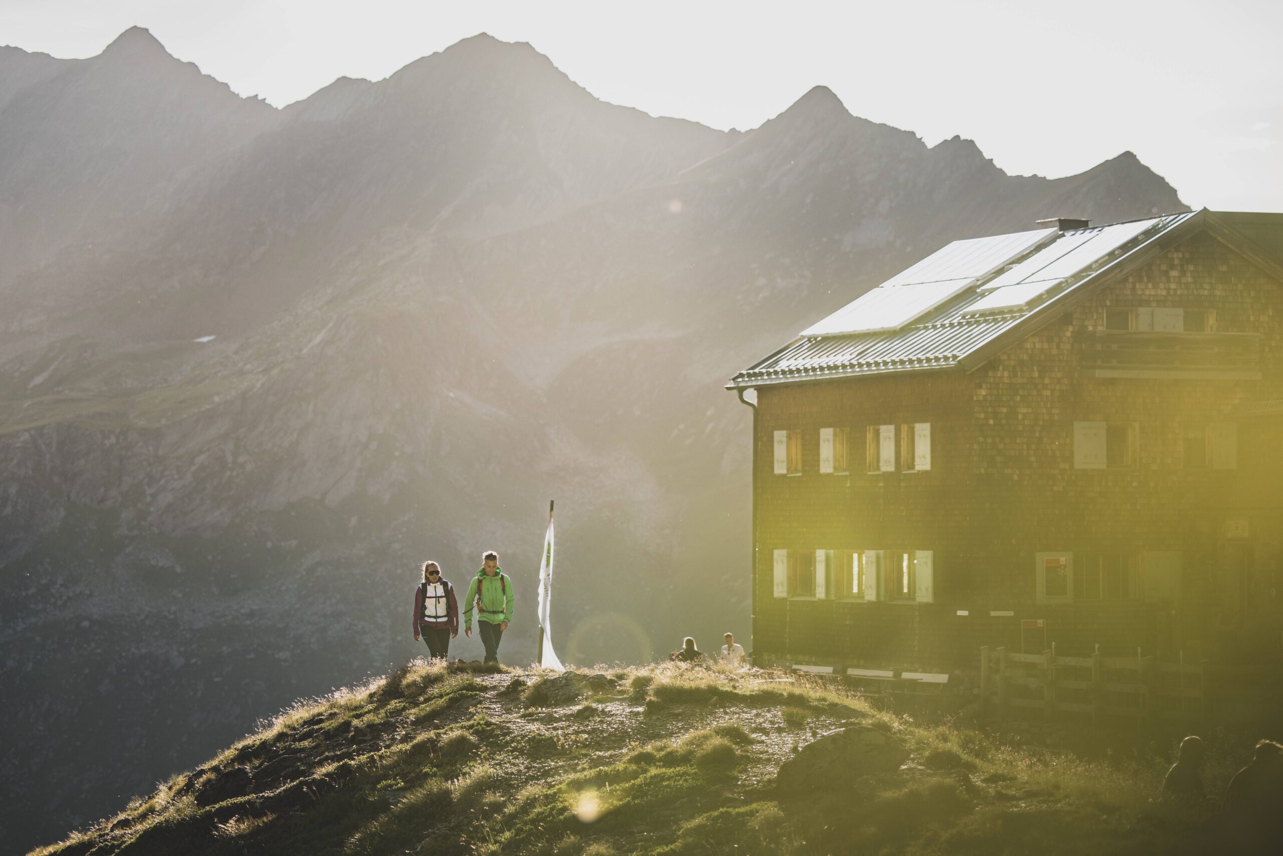 Ehrliche Tiroler Küche – auf 2.375 Metern geniessen Alpinisten in der St. Antoner Edmund Graf Hütte fast ausschliesslich regionale und teils sogar eigens angebaute Lebensmittel mit Blick auf die Verwallgruppe.