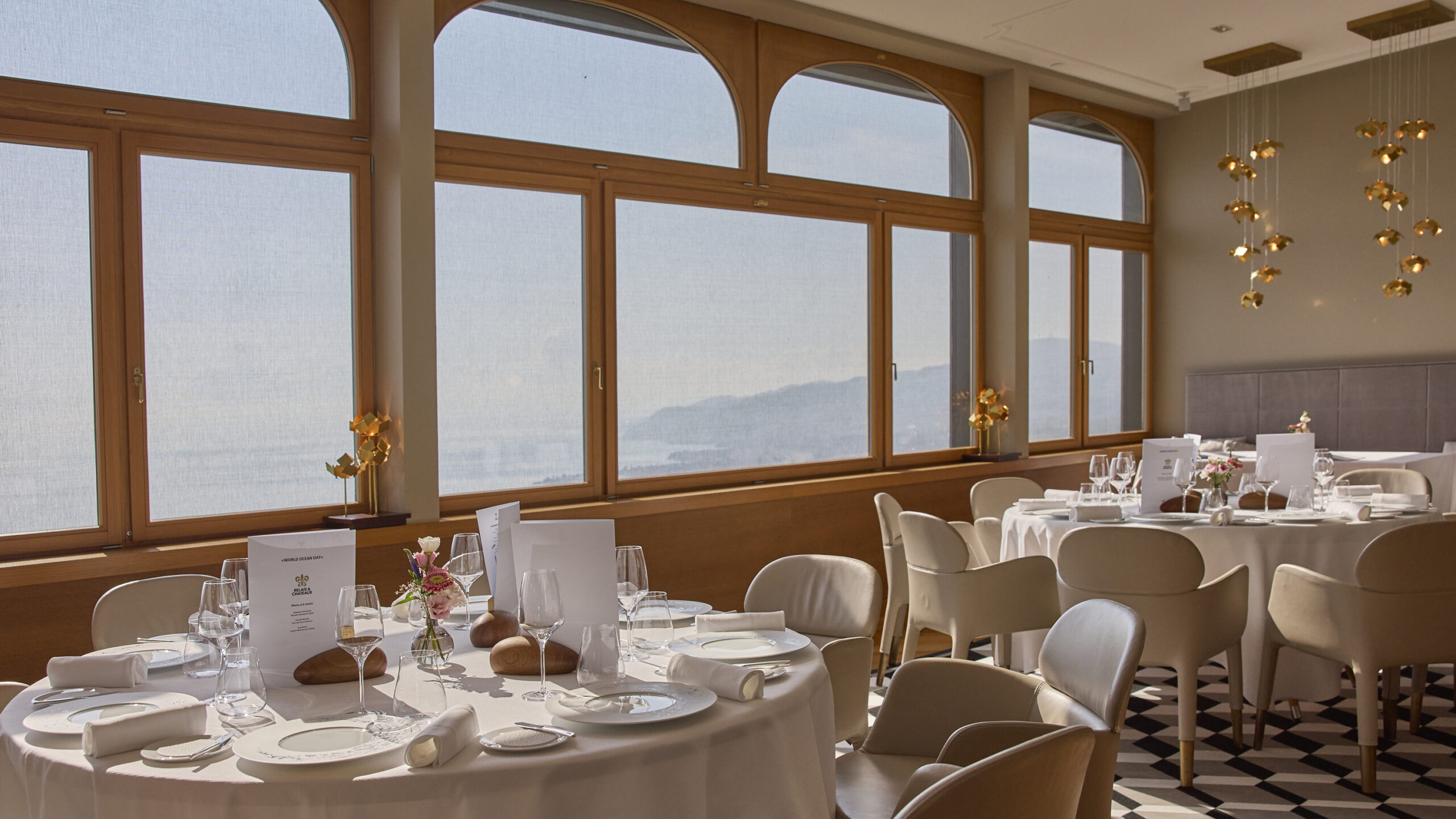 In einem eleganten Zusammenspiel von Belle-Époque-Charme und zeitgenössischem Design offenbart das Gourmetrestaurant die kreative Kraft und die meisterhafte Handschrift eines Spitzenkochs, dessen Auszeichnungen zu den höchsten der gastronomischen Welt zählen. Als gebürtiger Romand ist Stéphane Décotterd ein ebenso ideenreicher wie verantwortungsbewusster Küchenchef, der ausschliesslich mit lokalen Produkten arbeitet – mit grossem Respekt für Region und Saison.