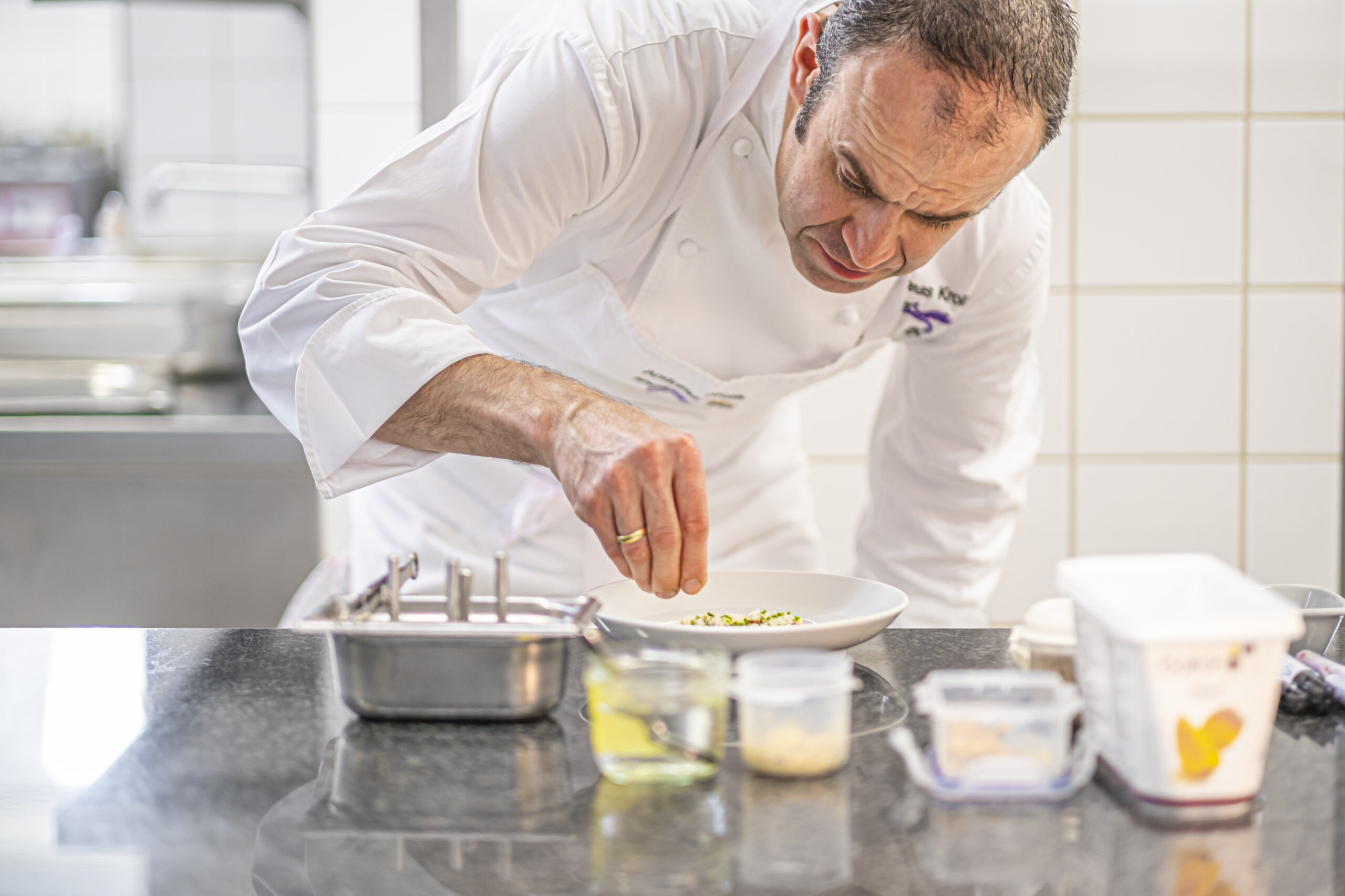 Im Restaurant de l’Hôtel de Ville, das längst zu einer kulinarischen Institution geworden ist, kreiert er mit Leidenschaft eine moderne Küche, die auf gesunde Zutaten setzt und sich ständig weiterentwickelt – stets im Einklang mit den neuesten Techniken der Haute Cuisine. Giovannini bewahrt nicht nur die Traditionen seiner grossen Vorgänger, sondern interpretiert sie neu und verleiht ihnen eine zeitgemässe Dimension.