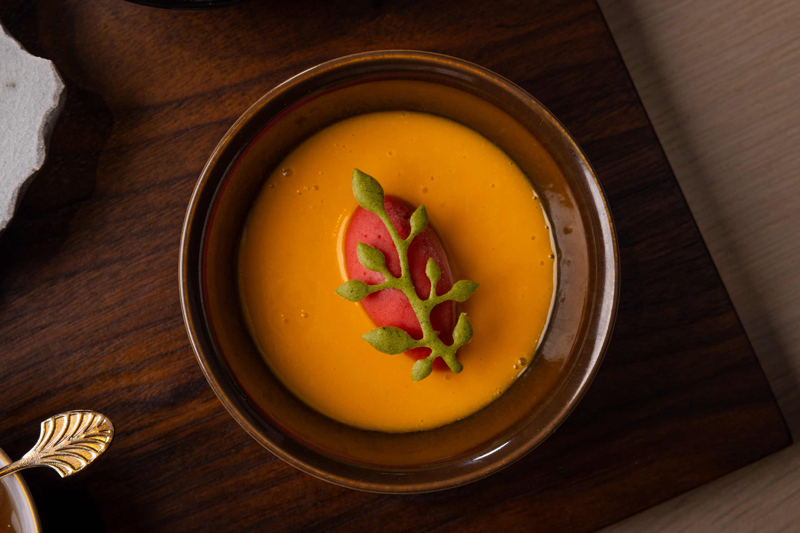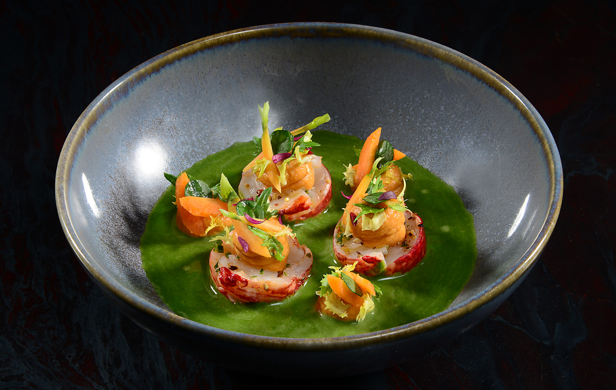 Auch als Experte für Fisch und Meeresfrüchte bekannt, verleiht Krolik dem spanischen Carabinero – der roten Tiefseegarnele – eine fast schwebende Leichtigkeit: serviert mit Wermut-Schaum, pikanten Karotten und Zitronenkonfit. Die feine Balance aus subtiler Süsse und milder Säure zieht sich durch das gesamte Menü – etwa bei Makrele mit einem Dashi-artigen Sud und Auberginencreme.