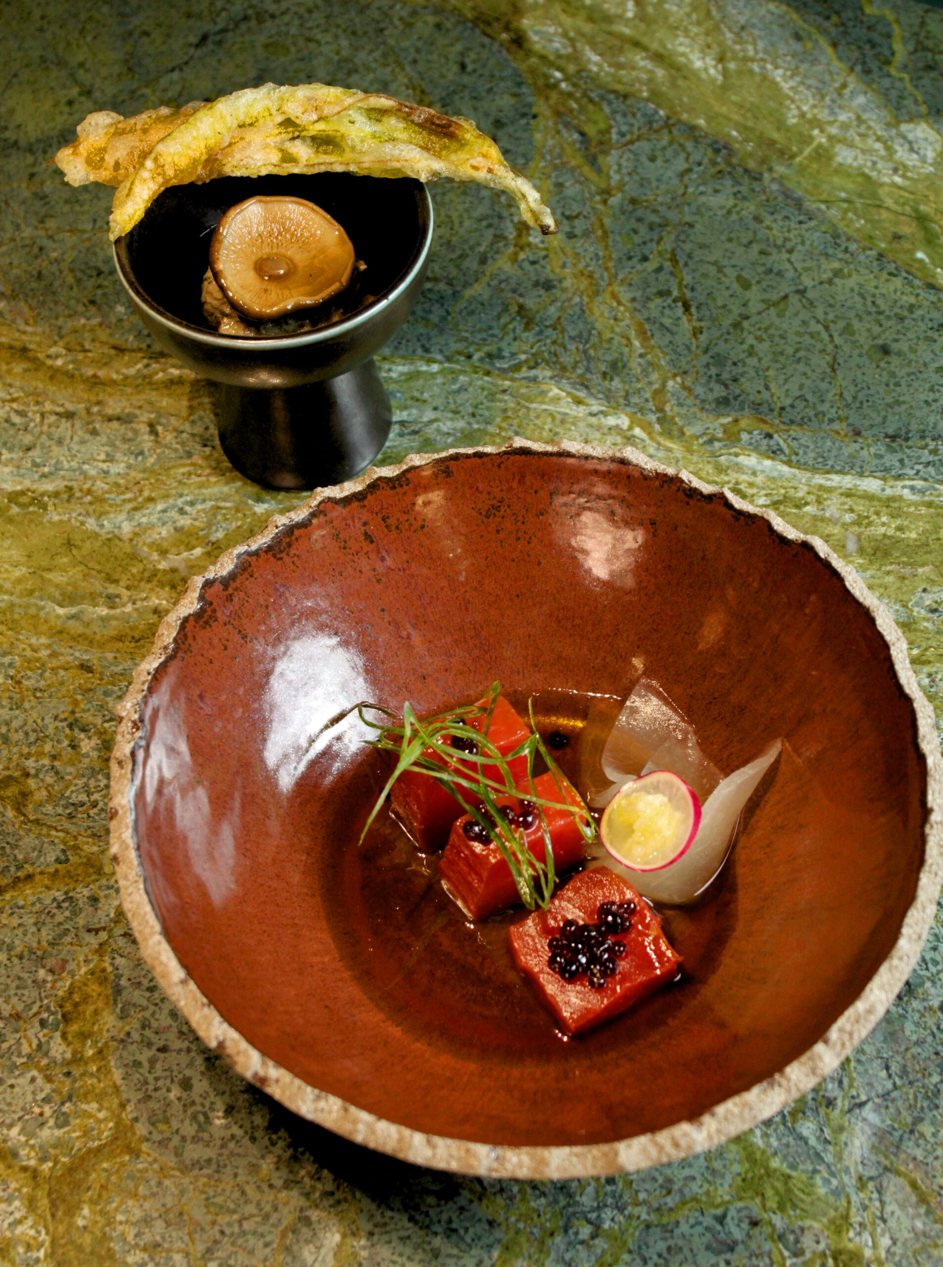 Inspiriert von Aromen aus den Küchen der Welt, frischem Obst, Gemüse und Kräutern entstehen farbenfrohe, kunstvoll angerichtete Speisen. Gemeinsam mit dem kulinarischen Team des Restaurants Just Veg entwickelt Marino alljährlich ein exklusives Menü, das klassischen Gourmetgerichten einen modernen Twist verleiht.