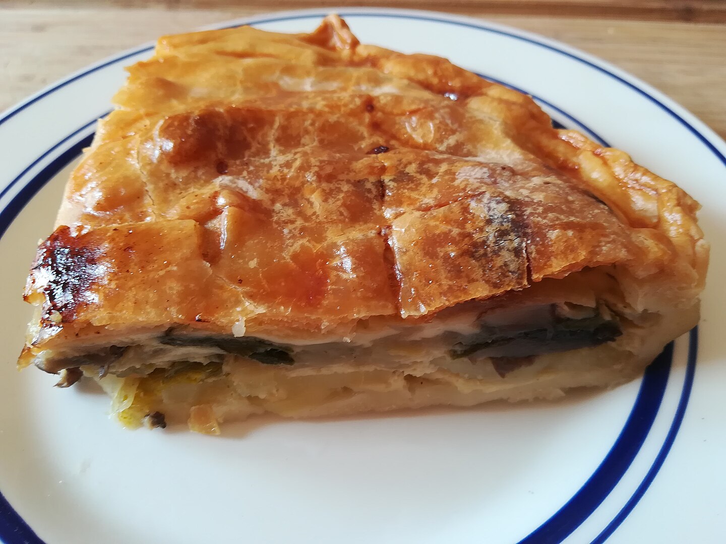 Kartoffeln und Lauch kurz vorkochen, Zwiebeln andünsten. Alles mit Apfel und Käse mischen, würzen. Blätterteig auslegen, Füllung hineinlegen und mit Teigdeckel verschliessen. Bei 200 °C ca. 35 Minuten goldbraun backen.