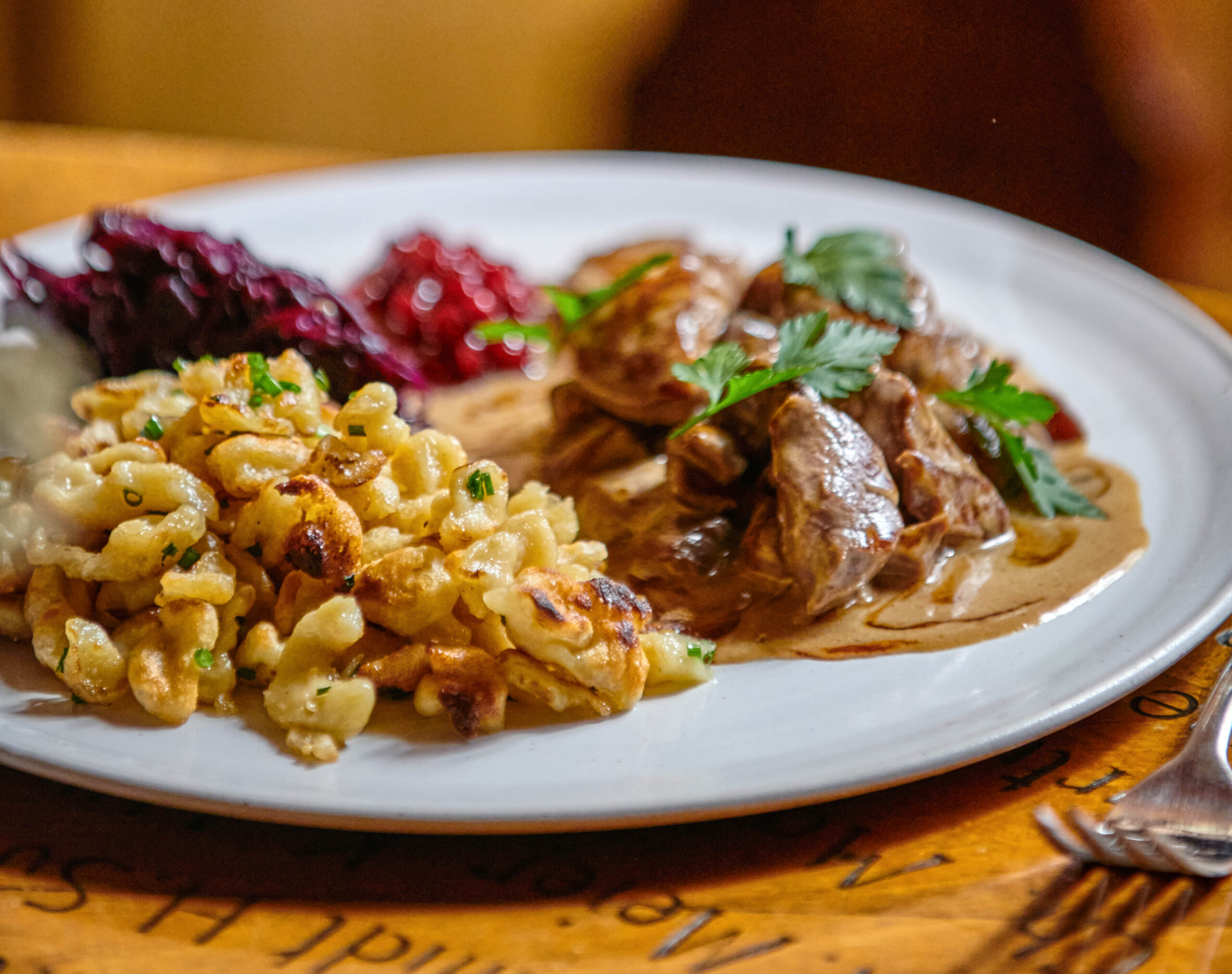 Begleitet wird die Wildkarte von hausgemachter Iva, einem alpinen Kräuterlikör, der perfekt mit den kräftigen Aromen harmoniert. Auch für Vegetarierinnen und Vegetarier gibt es besondere Angebote wie den „Wild ohne Wild“-Teller mit Waldpilzen und Wildkräutern.